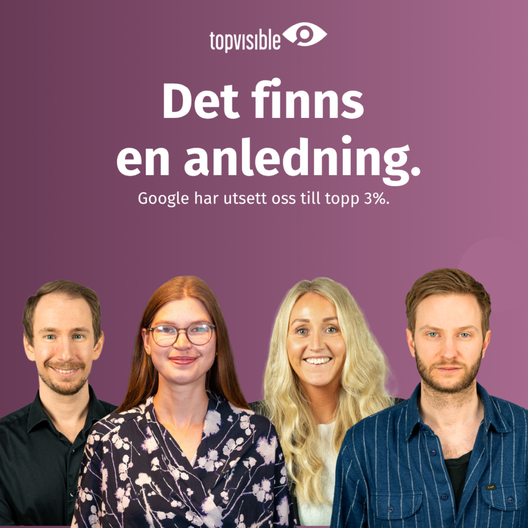 Topvisible är en Google Premier Partner-certifierad byrå, vilket innebär att vi tillhör de 3% bästa Google Ads-byråerna i Sverige. Sedan 2012 har vi hjälpt företag att skapa lönsam tillväxt genom Google Ads, från sökannonser och Shopping till YouTube och Display.