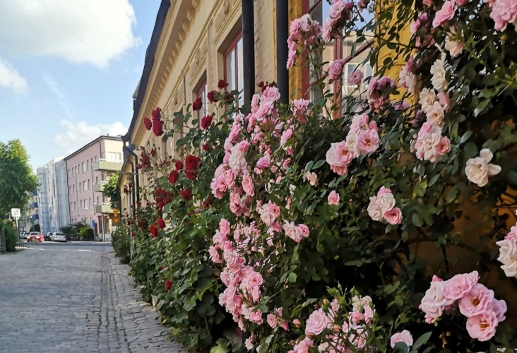 Gatan på vägen hem i Lund, där jag maniskt tar bilder rosorna varje år!
